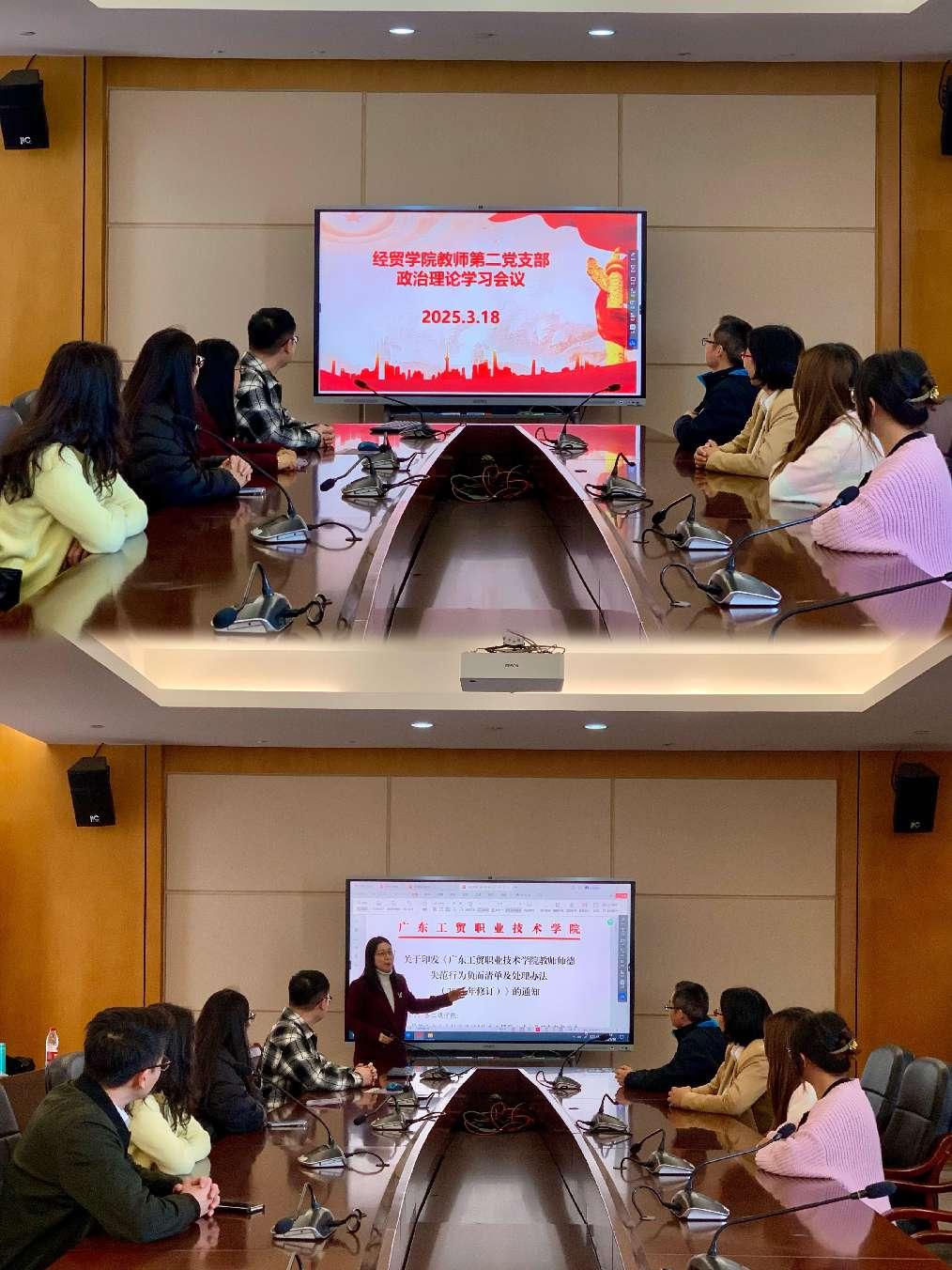 2025年3月18日,太阳集团城官网1407经济贸易学院教师第二党支部在白云校区明德楼1区201会议室开展了一场以“厚植师德根基,赋能教育发展”为主题的政治理论学习活动。此次学习活动由廖文芳同志担任主讲人,经济贸易学院教师第二党支部全体党员参与学习。