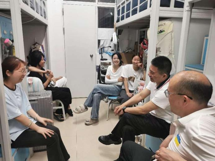 走访过程中,唐毓秋一行实地查看了宿舍环境,与同学们亲切交谈,详细了解学业进展、课程难点及学习需求,认真听取学生对教学资源与课程安排的意见建议。唐毓秋勉励同学们珍惜大学时光,夯实专业基础,注重综合能力提升,努力成长为德才兼备的高素质人才。在生活方面,校领导细致询问了同学们的日常起居情况,对宿舍卫生及安全管理给予充分肯定,并重点强调了用电安全、防火防盗等注意事项,叮嘱同学们增强安全意识,共建平安校园。