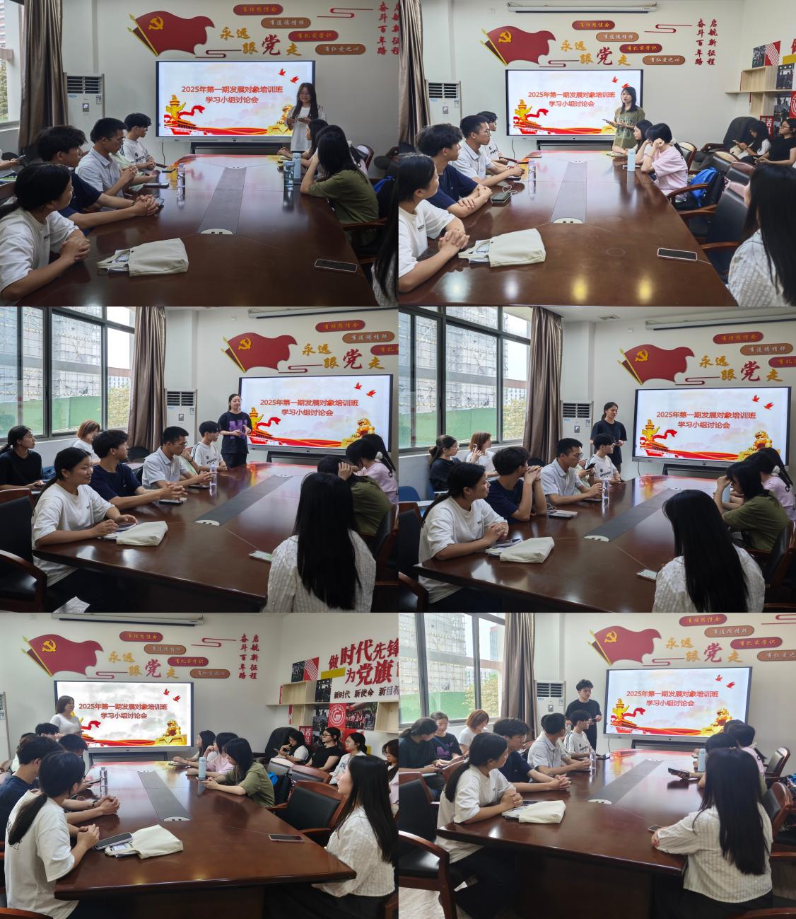 2025年5月28日,经济贸易学院举办2025年第一期发展对象培训班学习小组讨论会,全体发展对象围绕坚定理想信念,端正入党动机,认识和理解党风党纪等内容展开深入交流。