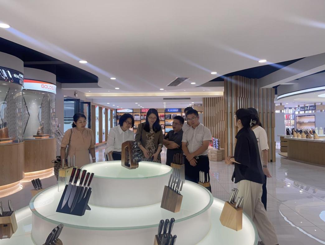 调研组走进企业样本间、营销直播中心,亲眼见证主播手持五金刀剪产品激情带货的场景。“传统产业数字化转型的核心是人才”蒋晶院长指着忙碌的直播间说道,“我们将动态优化课程,让学生从‘懂理论’升级为‘能实战’!”