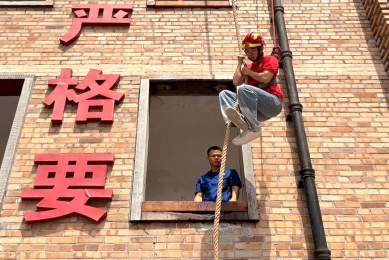 六辆特种消防车在救援站整齐列阵,每辆车都闪耀着专业的光芒。消防指战员为师生们详细讲解了这些“钢铁战士”的独特本领,学生们近距离触摸装备,惊叹“钢铁巨兽”背后的科技力量。在烟雾逃生体验舱中,支部党员弯腰捂鼻,在黑暗环境中突围。“方向感完全丧失,真正体会到消防员的英勇!”学生党员黄毅感慨道。在消防科普中心,支部成员系统学习了火灾预防、初期灭火和逃生自救等知识。随后,全员挑战消防员日常训练的15米逃生塔,攀爬强度项目让青年学子直呼“每一秒都是对体能与意志的双重考验”。