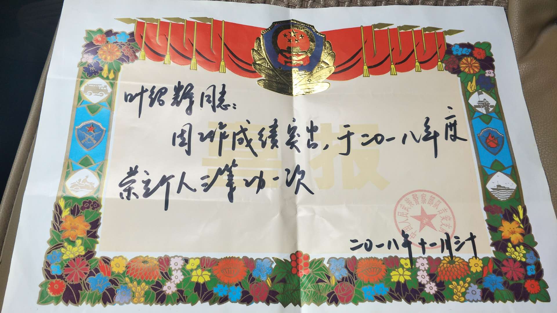 叶绍辉同学在部队荣立三等功