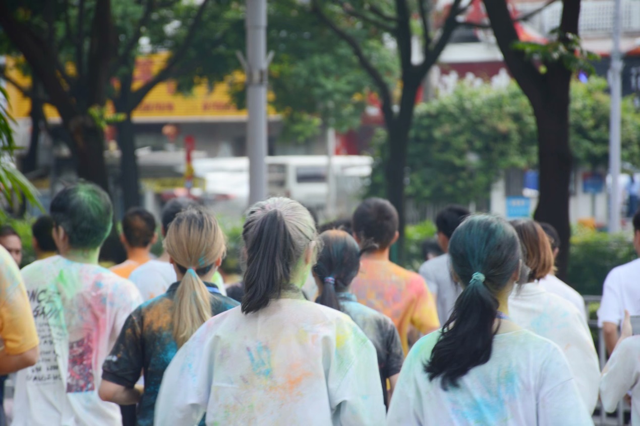 在跑前小游戏结束之后就是我们最为期待的彩跑环节了。工作人员宣布彩跑活动正式开始,醒狮队为这最后最精彩的活动环节领跑,大家撒彩跑粉,踏上了彩跑之旅。随后年轻的身影不断地追逐,哪里有彩粉的身影,空气中总会划出好看的弧度,200米,400米,600米赛段不时传出欢声笑语,男生的绅士风度也显得淋漓尽致。