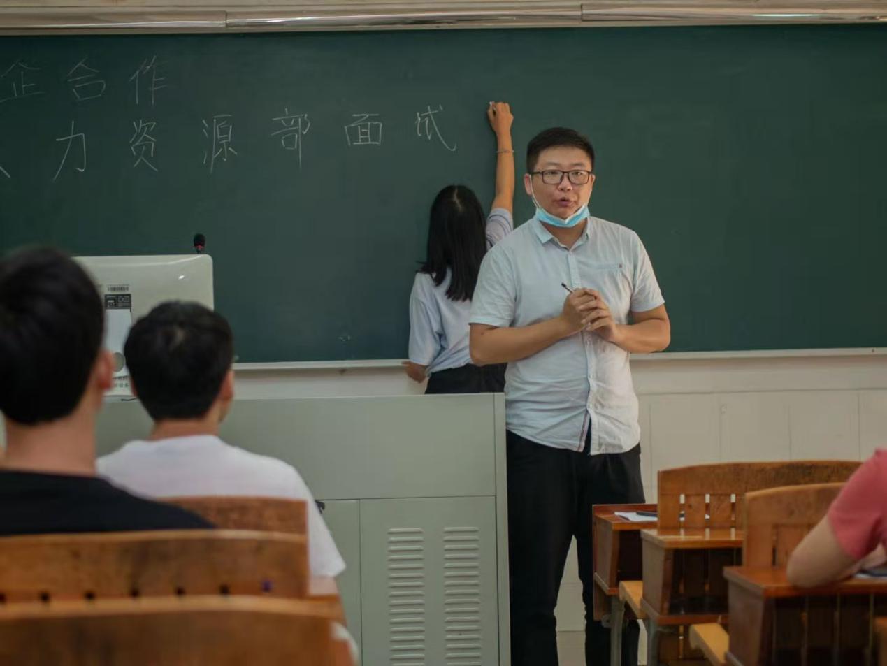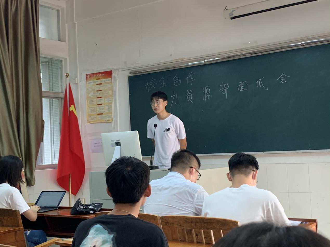 我校21名学生积极参加了此次选拔会。在选拔会上,面试官通过面对面交流的方式向同学们介绍公司的概况、HR的职业发展方向以及人员需求。随后通过两轮的面试环节,此次选拔会最终敲定了7人面试者。在会议的最后,公司团队负责人杨舜豪强调了团队合作的重要性,鼓励大家要积极配合彼此的工作,发挥出团队的最大优势。
