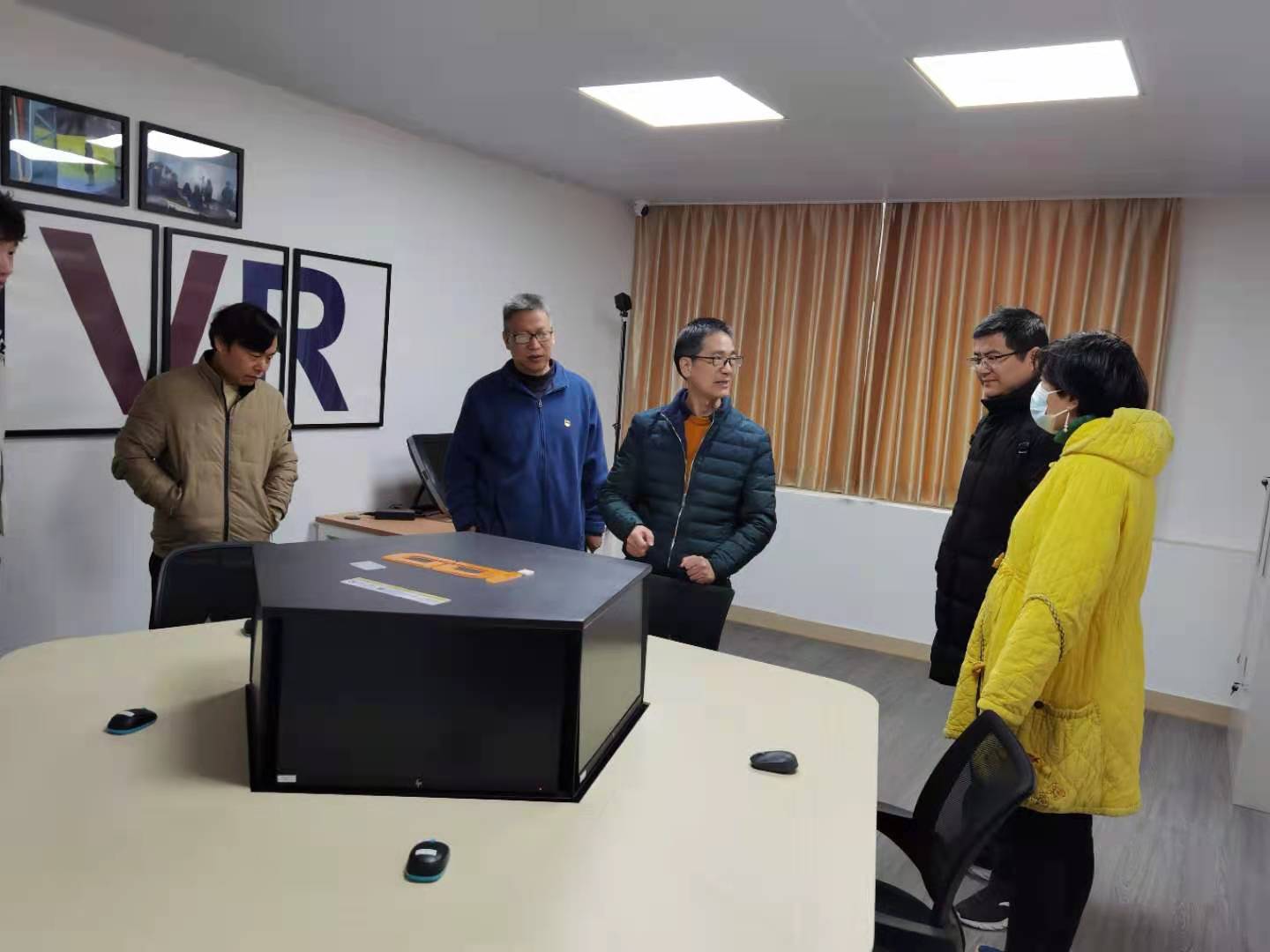 在交流会上计算机学院领导、教师与番职院黄主任等一行进行了多方面交流,就VR虚拟现实技术实训基地建设经验、虚拟现实专业建设、人才培训、科研合作、虚拟现实实训项目开发等方面进行深入的交流探讨,随后黄中伟主任一行参观考察了东校区计算机与信息工程学院实训中心,计算机学院负责人陪同并详细介绍了计算机与信息工程学院VR/AR实训中心的建设及发展情况,实地演示和体验了VR/AR实训设备,包括VR Box2020最新内容包、IdeaVR教学引擎、G-Space大空间多人追踪系统等。