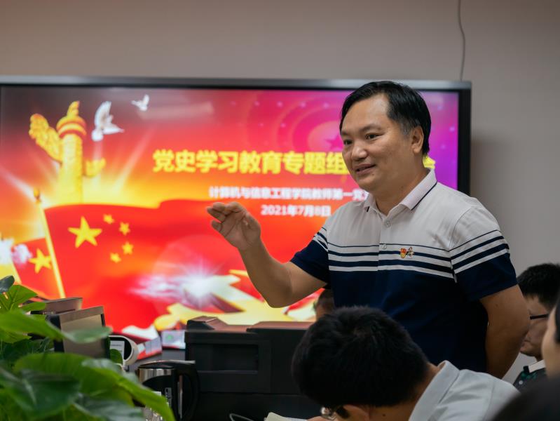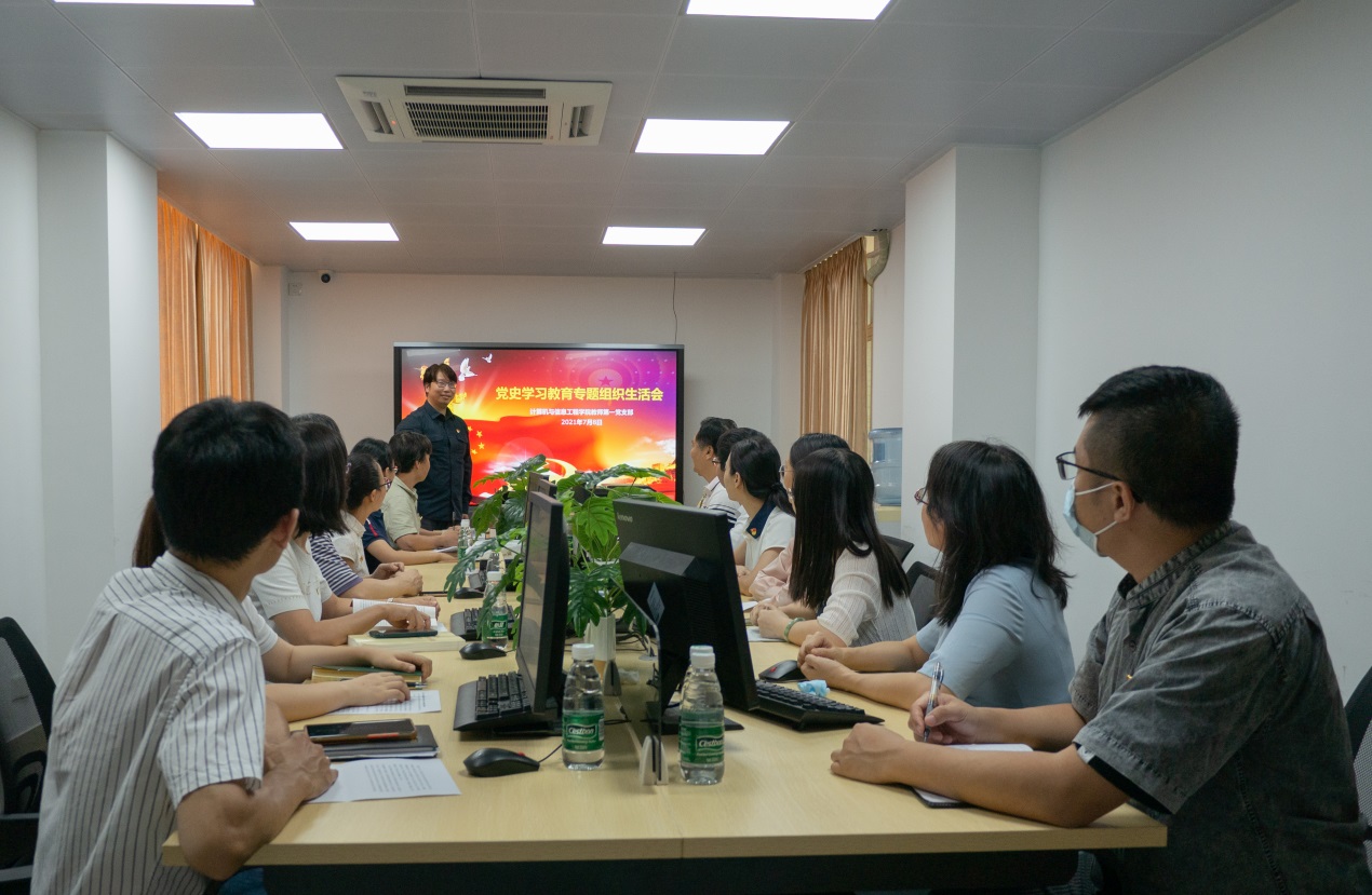 2021年7月8日下午,计算机学院教师第一党支部在天河校区实训楼202会议室召开了党史学习教育专题组织生活会。生活会由计算机学院教师第一党支部书记周宇主持,全体支部党员参加了会议。