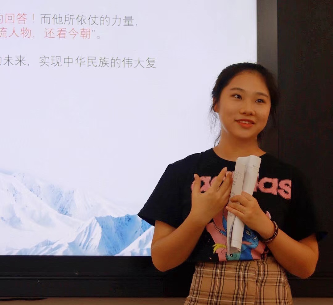 支部党员谢允菱同志讲解毛泽东同志的诗词《沁园春·雪》