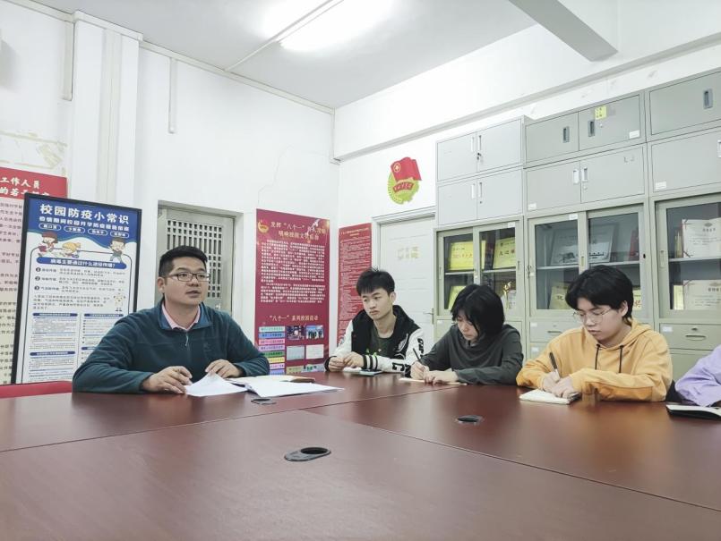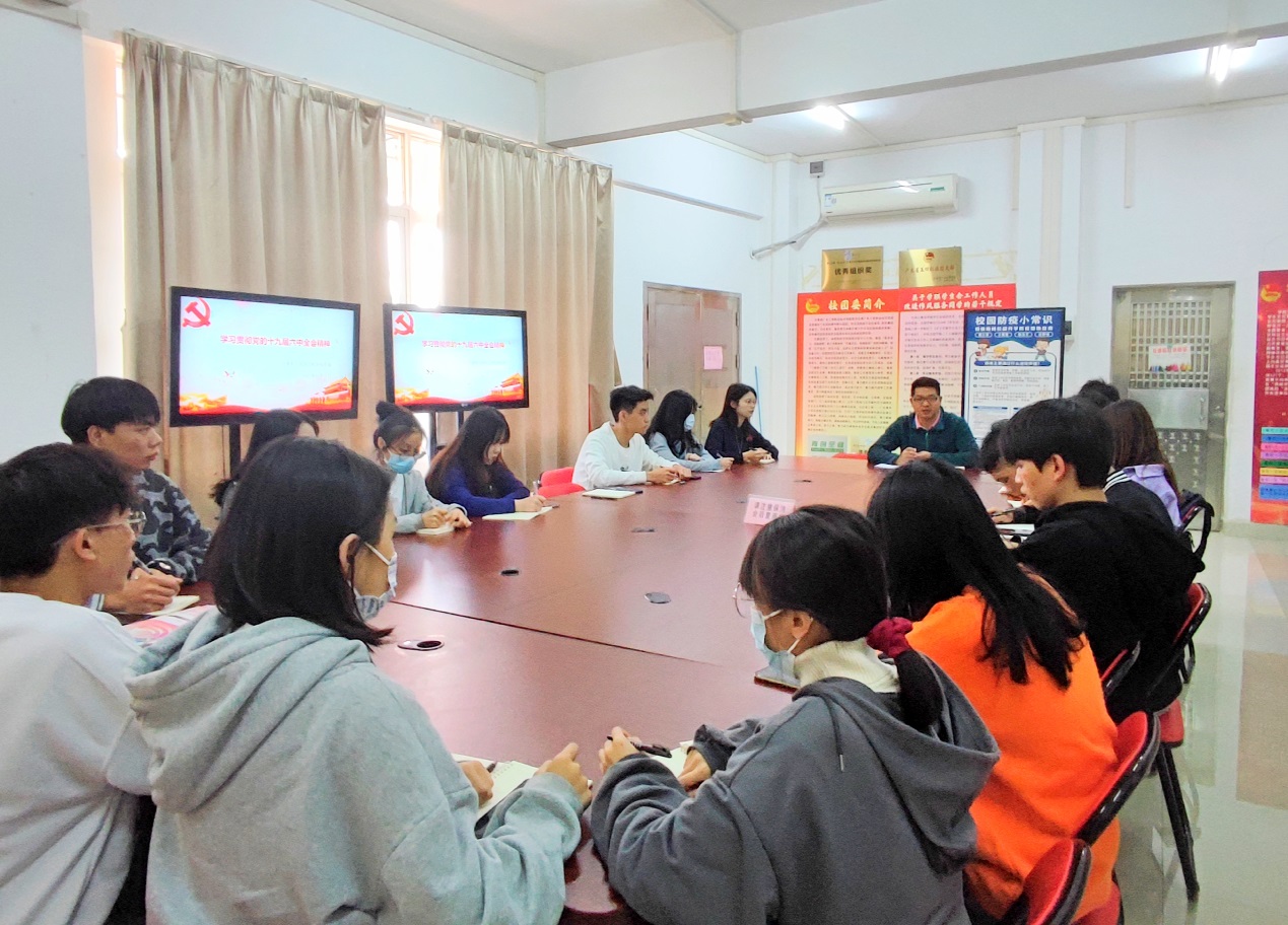 11月16日中午,计算机与信息工程学院团委书记代启兵组织学院团委、学生会负责人学习党的十九届六中全会精神。