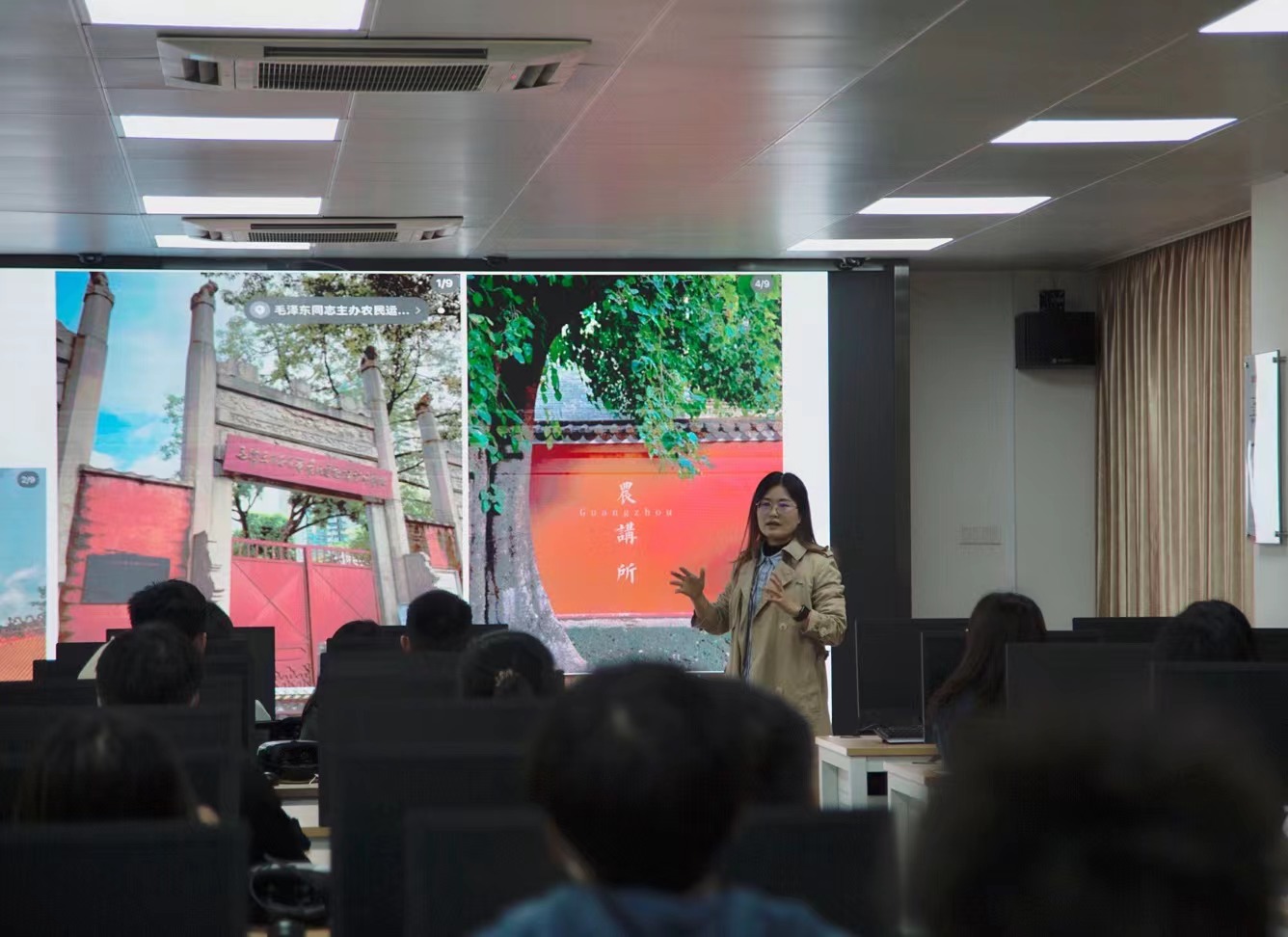 12月9日下午,计算机与信息工程学院学生第二党支部书记俞雪娇在天河校区实训楼202为第37期入党积极分子讲党课,题为《坚定理想信念,做新时代有为青年》。