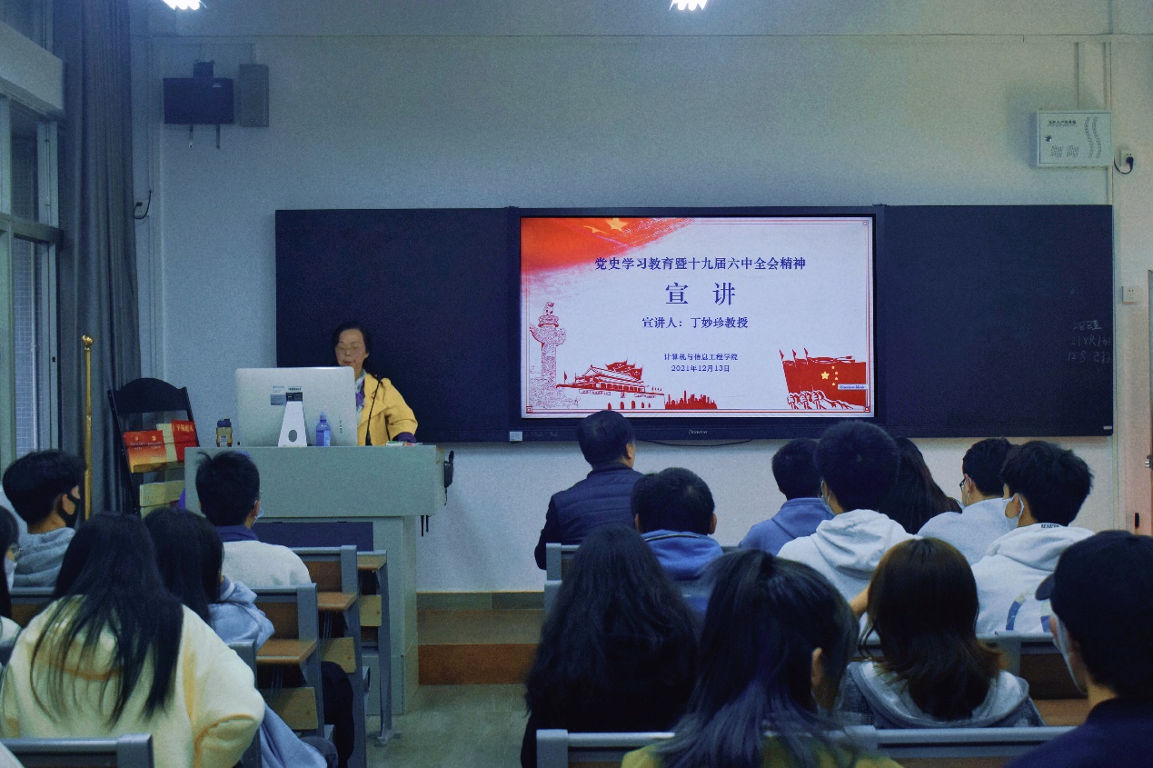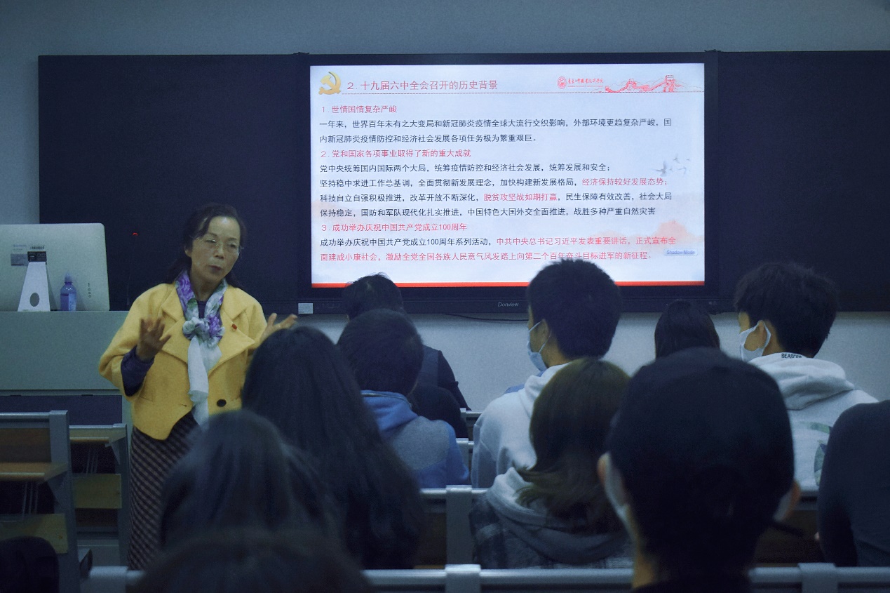 丁妙珍教授紧紧围绕学习《中共中央关于党的百年奋斗重大成就和历史经验的决议》和习近平总书记重要讲话,对全会精神进行了深入阐释和系统讲解。她强调,学习宣传贯彻好全会精神是当前一个时期我们党和国家的重大政治任务。要深刻认识中国特色社会主义进入新时代发生的历史性变革、取得的历史性成就,深刻认识党在百年奋斗中的历史经验,把党的历史经验作为正确判断形势、科学预见未来、把握历史主动的重要思想武器,作为想问题、做决策、办事情的重要遵循,作为判断重大政治是非的重要依据,作为加强党性修养的重要指引,更加清醒、更加坚定地办好今天的事情。