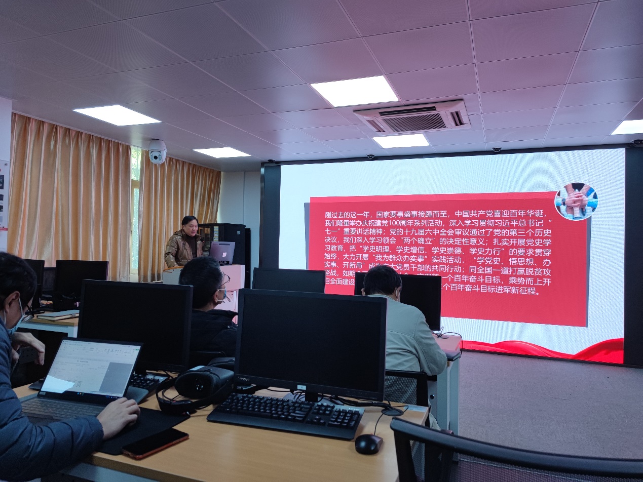 在会上,张宁带领大家进行第一议题学习,共同学习了习近平总书记2022年新年贺词,并作了题为《奋进新征程,勇立潮头开新局》的讲话,刚过去的2021年,中国共产党喜迎百年华诞,习近平总书记发表了“七一”重要讲话;党的十九届六中全会审议通过了党第三个历史决议,并通过了“两个确立”。张宁向大家回顾一年里学院组织开展党史学习教育深入学习贯彻习近平新时代中国特色社会主义思想所取得的成效,并部署了2022年重点工作内容。2022年,学院要在开展政治理论学习、基层党组织建设、人才培养与就业、学院意识形态安全、党风廉政建设、疫情防控等方面要敢于作为,勇于担当。另外,张宁还特别强调学院全体师生继续做好常态化疫情防控,确保校园健康安全。