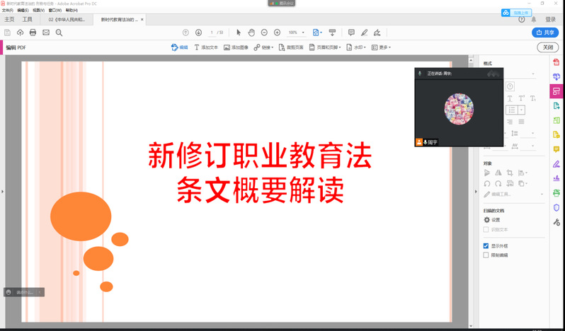 随后,周宇领学《中华人民共和国职业教育法》原文,并就新修订的职业教育法条文进行了重点解读。周宇指出,新法具有全面系统、尊重实践、问题导向、着力创新的特点,将会对新时代职业教育的改革发展起到固根本、稳预期、利长远的重要作用。新法首次明确了职业教育是与普通教育具有同等重要地位的教育类型,这将有利于塑造社会共识,助推职业教育高质量发展。