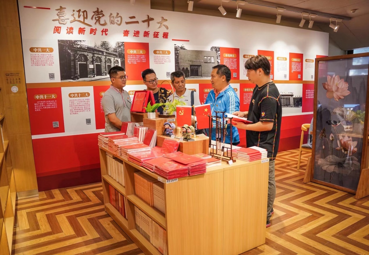 近日,计算机与信息工程学院党总支全体党员、干部正在深入学习《习近平谈治国理政》第四卷。 9月24日下午,计算机学院教师第一党支部和学生第二党支部来到了广州购书中心“喜迎党的二十大”展览区开展专题学习活动,集中学习了《习近平谈治国理政》第四卷。党总支书记张宁、组织员曾昭平参加了活动。