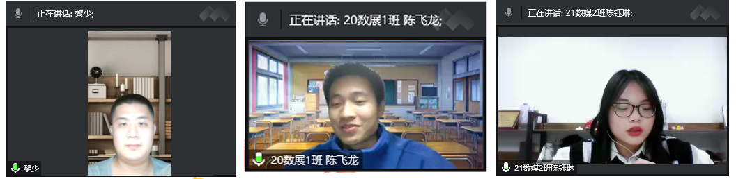 教师代表黎少、学生代表陈飞龙和陈钰琳谈学习心得