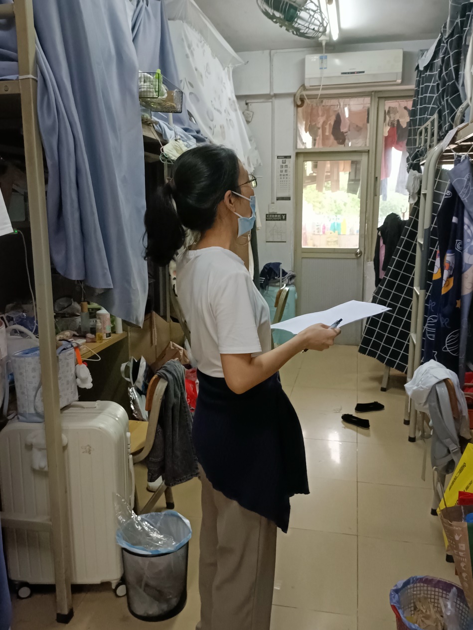 辅导员在学生宿舍排查安全隐患