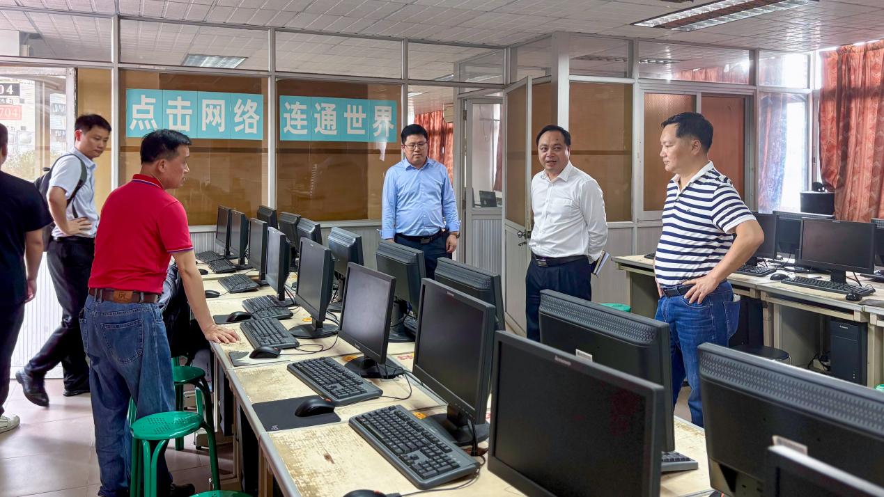 座谈会后,揭英荣在计算机学院领导班子的陪同下,走访了教学楼、实训楼和学生宿舍,实地调研教学管理、实训条件及学生生活保障情况。