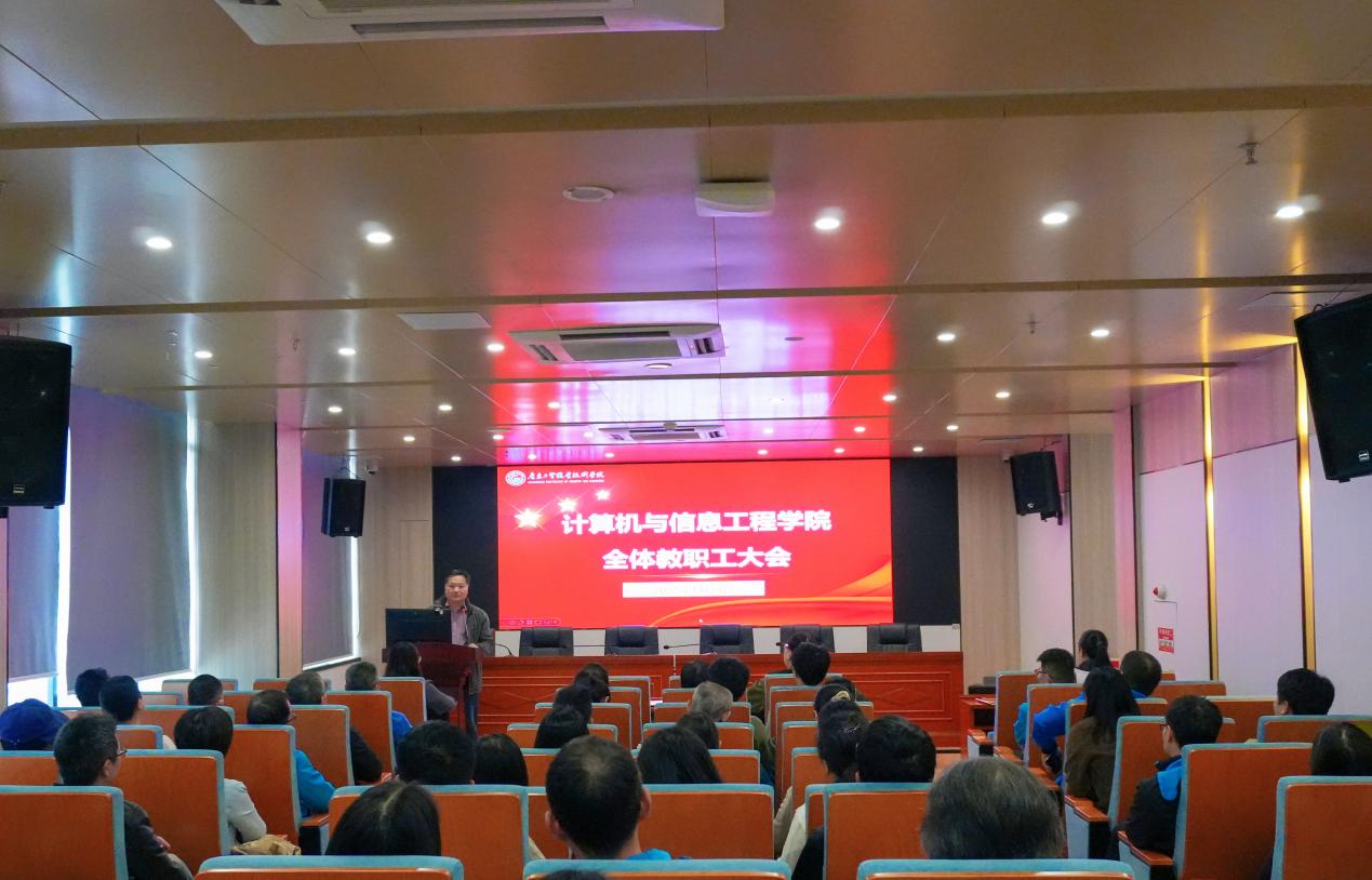 本次计算机学院的教职工大会,进一步加强了对全体教职工的思想政治引领,明确了工作核心与前进方向。希望全体教职工能以更加饱满的热情和扎实的工作作风,积极投身于工作之中,为学院的发展作出贡献,并推动学院各项事业的高质量发展。