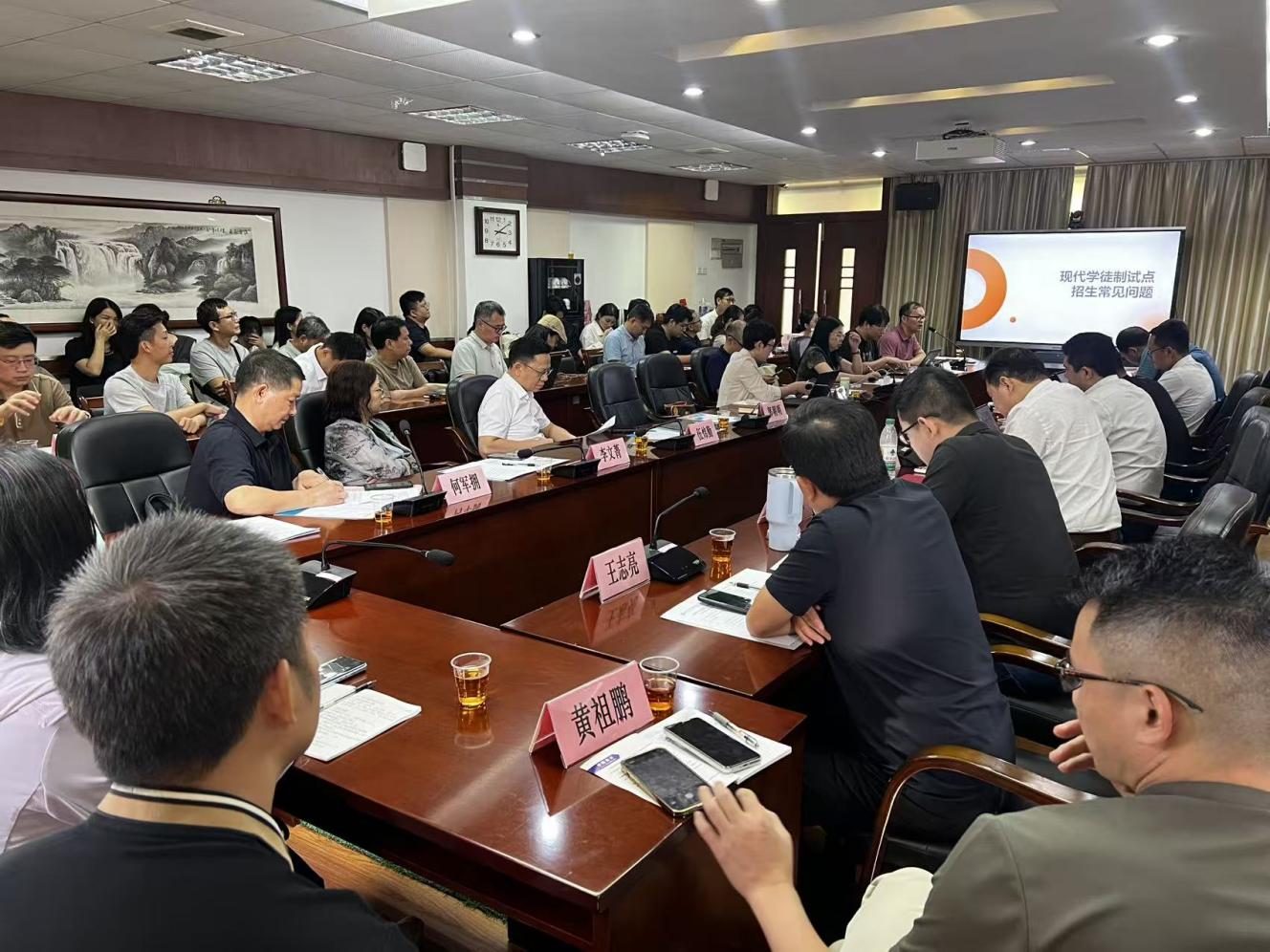 2025年9月26日下午,学校在天河校区西区中心会议室召开了加强现代学徒制试点管理暨2026年试点申报工作专题研讨会。此次会议旨在全力推动我校现代学徒制试点申报工作扎实有效开展。学校领导、相关职能部门负责人、各二级学院院长、教学副院长、专业负责人、骨干教师,以及来自多家合作企业的代表共同参加了此次研讨会,共商育人良策。