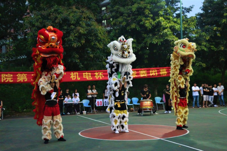 随着醒狮队精彩绝伦的舞狮表演,拉开篮球赛闭幕式的帷幕。只听裁判员一声哨响,比赛正式开始。伴随着毛毛细雨和观众们的加油助威的呐喊声,两支队伍奋力比拼,你追我赶的比分牵动着所有人的心弦。经过激烈的角逐,本场闭幕式决赛中17特加班以63:57的比分获得“机电杯”篮球赛冠军,18机体3班获得“机电杯”篮球赛亚军。