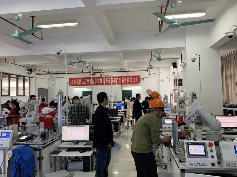 11月28日、29日,参训学员在我校“1+X工业机器人应用编程职业技能等级证书”管理中心完成了为期2天的紧张学习与考核,体现了落实立德树人根本任务,完善职业教育和培训体系,深化产教融合、校企合作的重大制度设计,培训班是广东省首届考核师线下培训,参训各校老师十分珍惜此次培训机会,积极的向马雪峰教授和莫胜憾教授进行请教,加强交流研讨,共促证书工作新发展,珍惜机会,加强学习,助推X证书落地实施。29日在严肃的考核与点评过程中,整个培训落下帷幕。