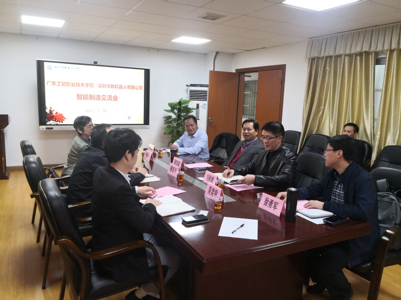 为推动智能制造教育教学改革和校企合作开发相关教学资源,1月26日,我校与深圳华数机器人有限公司在天河校区召开智能制造教学改革交流会。学校党委副书记、校长何汉武,副校长刘贻新,深圳华数机器人有限公司总经理熊清平,副总经理莫奕举和业务经理刘丽琴,机电工程学院党总支书记邵超城、院长徐勇军及相关教师参加了本次会议。