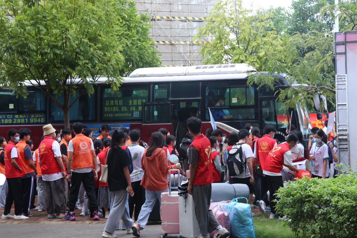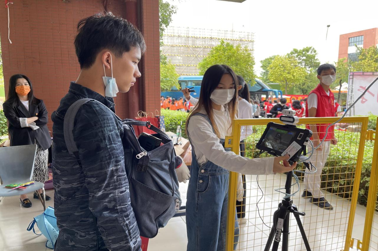 为做好疫情防控工作,21级新生进入校园之前必须出示健康卡、健康码及48小时内核酸检测阴性证明,测体温、行李消毒、更换口罩,并在报到处进行人脸识别身份验证。校园内机电学院领导、班主任老师、助班迎着朝阳早早地来到子新书院1号楼迎新报到现场等候新生的到来。