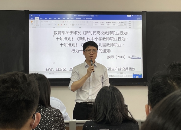 丘永亮结合上学期出现的一些教学不规范行为,深入解读太阳集团城官网1407教师教学工作规范。明确任课老师要严格遵守课堂教学要求,严明职业规范;同时开展课堂教学自查工作,全面清查任课教师在课堂教学过程中是否存在违反高校教师职业行为十项准则和《教师教学工作规范》课堂教学“十不准”的情况。