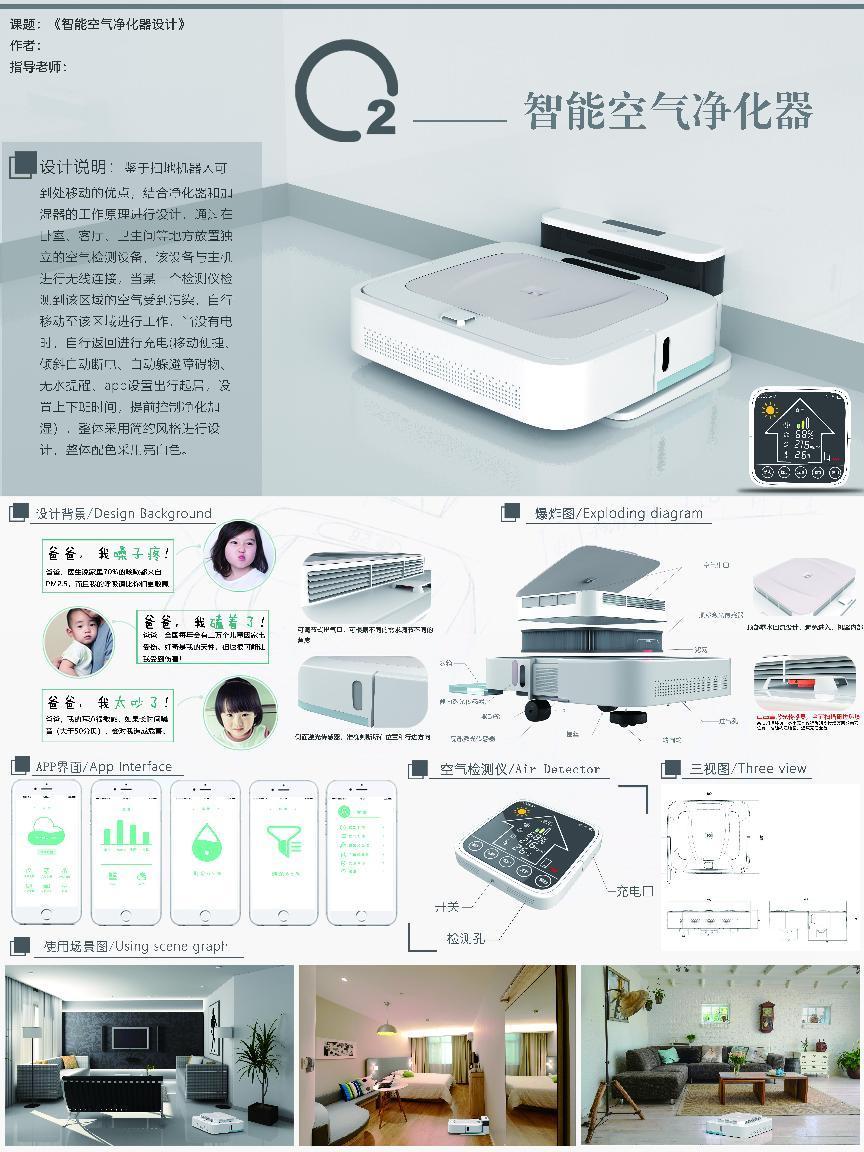 图5 产品设计方向作品3:智能移动式空气净化器设计 梁泳镔 指导老师:周渝明