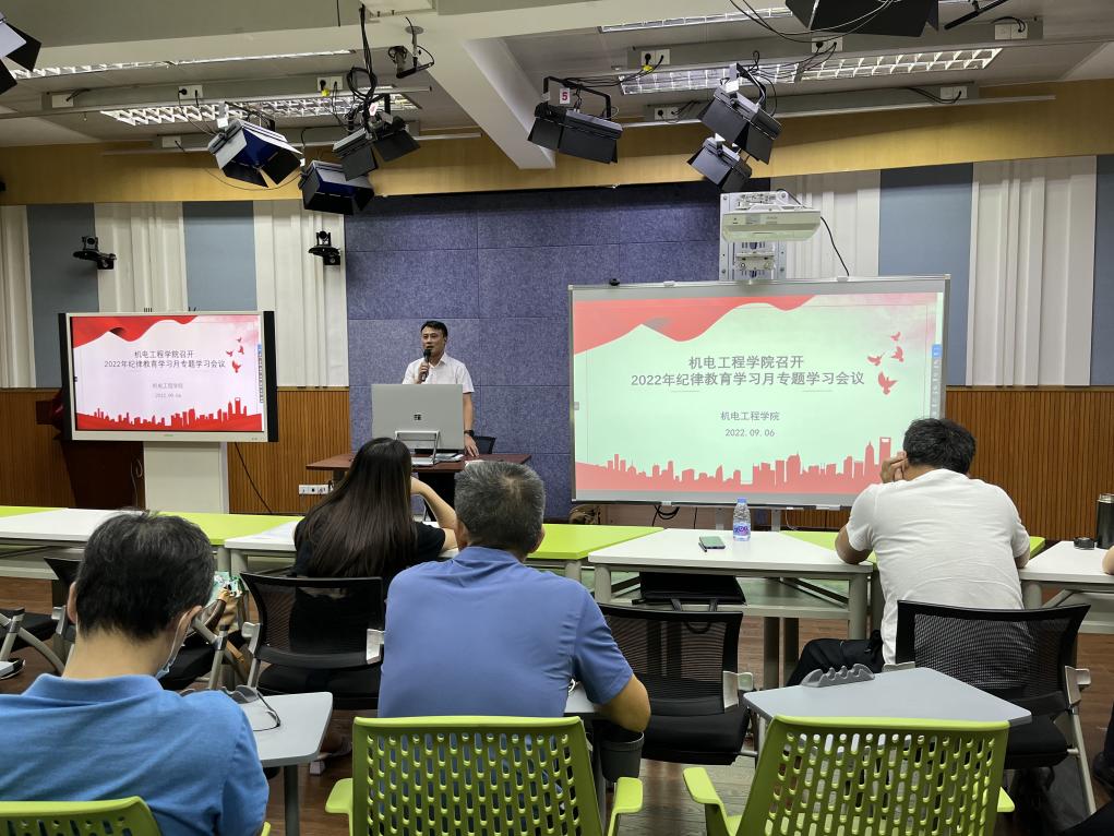 为了进一步增强教师党员的廉洁自律意识和抵御风险能力,机电工程学院党总支于2022年9月7日下午在天河校区西区507室召开以“勇于自我革命,永葆先进纯洁”为主题的专题学习会议。机电工程学院全体党员参加会议,会议由机电工程学院党总支书记邵超城主持,