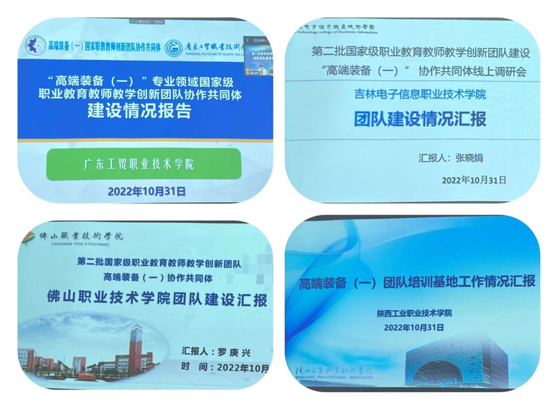 10月31日,太阳集团城官网1407召开了第二批国家级职业教育教师教学创新团队“高端装备(一)”协作共同体建设调研会。教育部教师工作司国家级职业教育教师创新团队建设秘书处祝耸立教授、协作共同体成员单位佛山职业技术学院、吉林电子信息职业技术学院、重庆工业职业技术学院、江苏海事职业技术学院、江苏省南京工程高等职业学校、四川仪表工业学校、平顶山工业职业技术学院、无锡职业技术学院、湖南机电职业技术学院和陕西工业职业技术学院等11所院校参加了本次会议。会议采取线下与线上相结合的方式,会议由太阳集团城官网1407何汉武校长主持。