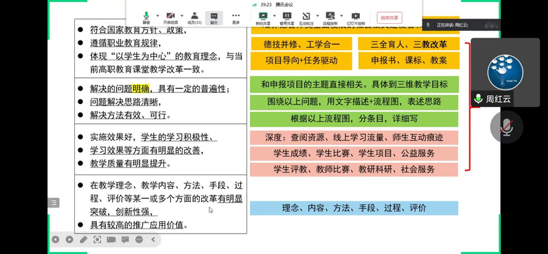 团队成员周红云副教授紧扣“课堂革命”典型案例认定评审指标,将指标解读与申报书撰写各环节一一对应起来,建议一方面从国家教育方针和政策中寻求思路,挖掘问题;另一方面,撰写过程要思路清晰和图文并茂,多用图表和流程图。