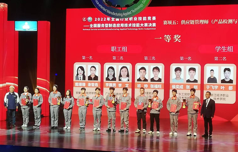 两名选手经过近8个月的艰辛训练,以饱满的热情,扎实的专业功底,过硬娴熟的专业操作技能,沉着应赛,克服重重困难,经过5个小时的角逐,圆满完成了比赛的所有内容,荣获得供应链管理师(产品检测与客户体验服务)赛项一等奖(第一名)的好成绩,宋显文老师荣获“优秀教练”称号、学院被授予“冠军选手单位”牌匾(全国唯一 一所双高双一流院校),充分展示了新时代工贸人顽强拼搏的精神和技能健儿傲人的风采,为学校争得了荣誉,为广东省增添了光彩。