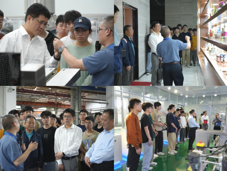 在广州珐玛珈智能设备股份有限公司人资行政总监汤显亮的带领下,我校共20余名师生一同近距离参观了该企业整线生产系统的生产工序、车间环境等。在展厅处,师生们详细听取了数十个系列产品的介绍说明以及包装的多个品类,对产品线有了初步的认识,并亲身体验了企业员工日常工作的工作状态。