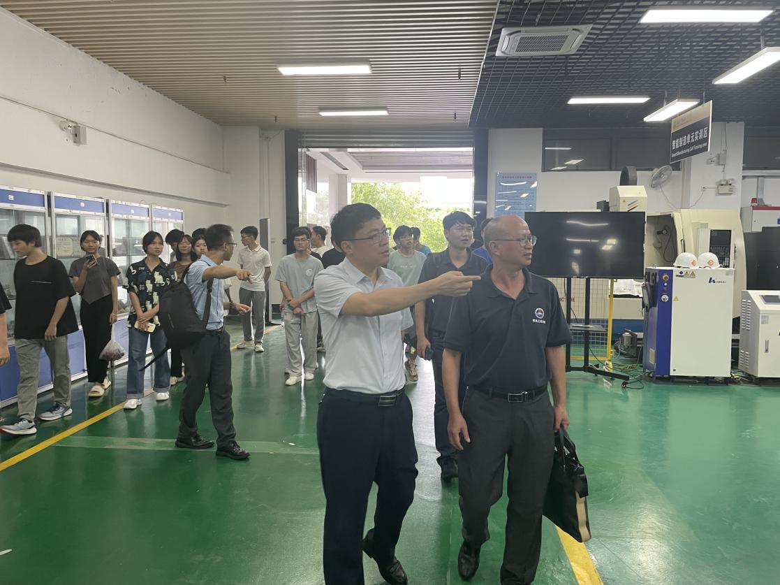 梁超鹏介绍与会人员,徐勇军致欢迎辞,对到校的老师及同学们表示热烈欢迎,指出2+2协同育人项目是构建职普融通、产教融合、科教融汇的重要举措,为培养高素质技能人才提供平台保障,希望21机制本科班学生接下来在我校两年的学习生活中做好规划、明确目标,敬畏规则、遵纪守法,知行合一、快乐成长。余席同介绍协同育人试点工作开展情况,表示我校对协同育人工作主动领导,积极配合,为两校合作交流及人才培养提供了坚实基础。吴卫国介绍21机制本科班班级情况,对来到我院学习的学生寄予希望。紧接着机制本科班在我院老师的带领下参观实训室,了解熟悉学习环境,同学们都表示对接下来的学习生活充满期待。