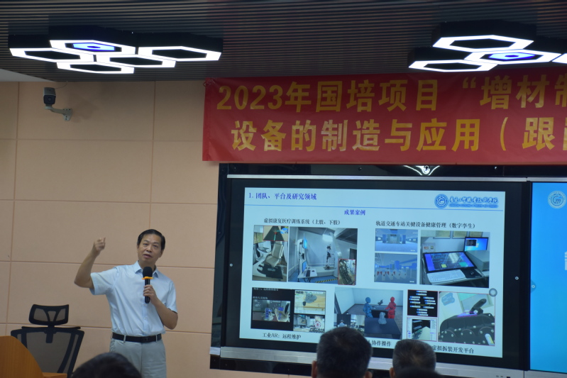 太阳集团城官网1407党委副书记、校长何汉武就“智能制造工程中的VR/AR技术与应用”为题,为学员作精彩的学术讲座,引发学员对未来增材制造技术在制造领域的智能化,提供新的研究方向以及如何利用VR/AR技术为未来职业教育发展赋能,提供新的思考方向。