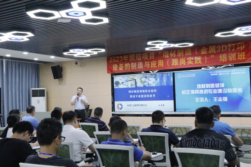 机械工业教育发展中心主任助理王志强以“增材制造领域校企协同推进专业建设的思考”为题,从产教融合发展的时代内涵和特点、增材制造技术发展和人才需求以及协同推进增材制造技术专业建设思考等方面展开分享。