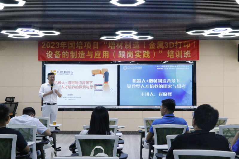 江苏汇博机器人技术股份有限公司副总裁崔晓辉就“机器人+增材制造背景下复合型人才培养的探索与思考”为题,从增材制造技术革命背景、复合人才培养方案等方面进行阐述。