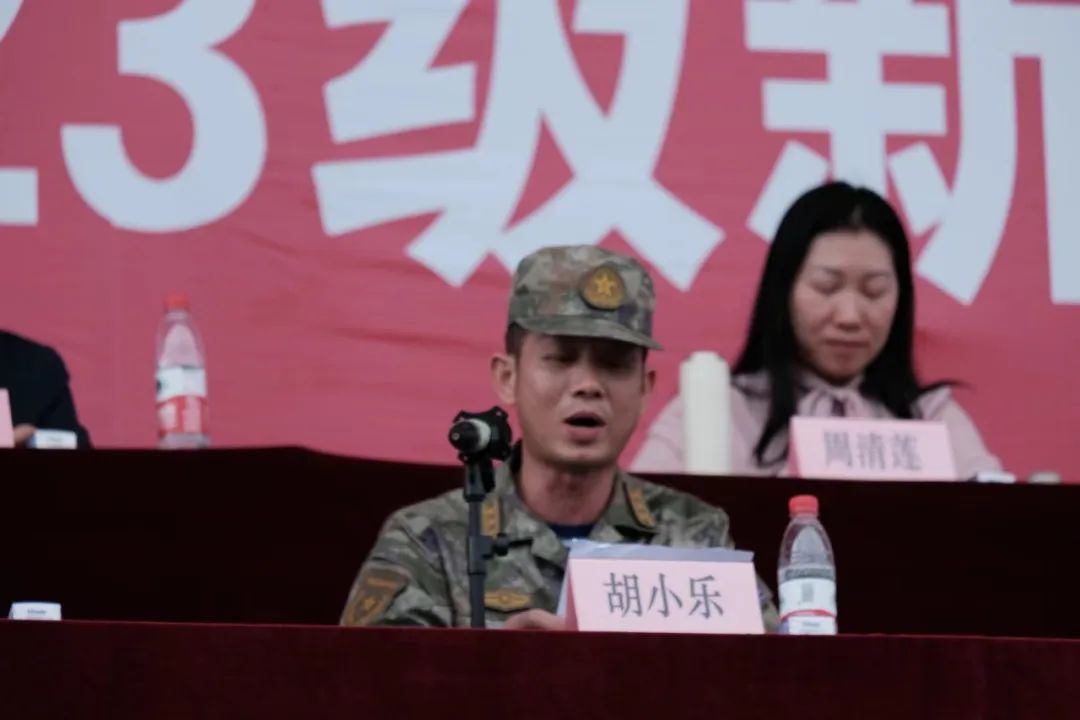 军训团教官代表胡小乐总结了这十四天同学们的训练情况。他表示,同学们通过军训,领略了军营氛围,感受了军人风采,拥有了军人情怀,强化了国防意识,增强了爱国热情。通过军训,同学们普遍增强了体质,磨练了意志,锻炼了抗挫折的品质,培养了团结协作精神,形成了良好纪律观念;通过军训,增进了师生之间的了解和沟通,同学们相互帮助,相互激勋,团结共进,形成了积极向上的良好班风和班级凝聚力。希望同学们以这次军训为起点,把军训中饱满的热情、顽强的毅力、必胜的信心化成学习的动力,积极主动地投入到学习和生活中去,努力拼博、奋发进取,在学习生活中锻炼自己、塑造自己、展示自己,以过硬的素质展现工贸学子良好的精神面貌!