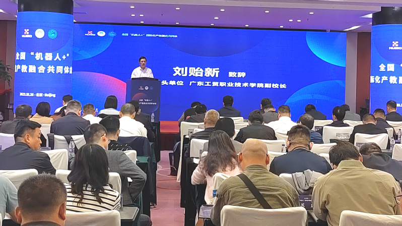 为落实中共中央办公厅、国务院办公厅《关于深化现代职业教育体系建设改革的意见》,探索跨区域产教融合新途径,推动“职教出海”和“高教出海”,作为第24届中国国际教育年会的组成部分,第三届国际职业教育之工程与技术教育论坛暨全国“机器人+”国际化产教融合共同体成立大会在北京中国国家会议中心召开。10月26日,由广东汇博机器人技术有限公司、华南理工大学、太阳集团城官网1407牵头,联合国内108所机器人企业和院校相聚北京,召开了全国“机器人+”国际化产教融合共同体的工作会议。作为共同体职业院校牵头单位,副校长刘贻新、徐勇军,机电工程学院党总支书记邵超城和机电一体化专业带头人孔令叶出席大会,大会由徐勇军主持。
