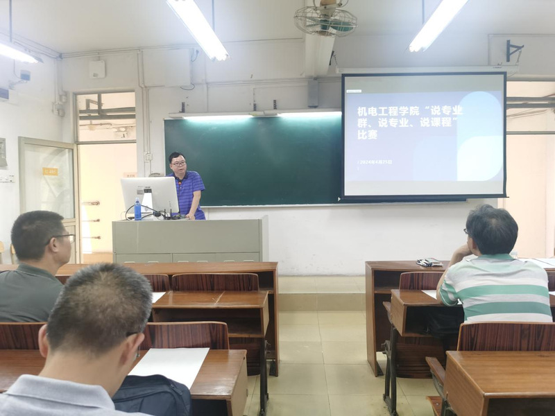 2024年4月25日下午,机电工程学院在天河校区综405顺利开展“说专业群、说专业、说课程”比赛,机电工程学院院长罗庚兴,副院长丘永亮、游凯,以及全体系主任等人出席并担任评委。本次比赛旨在全面推动学院专业内涵建设推进课程改革,提高教师课程建设、教育教学质量为广大教师提供一个交流和学习的平台通过全面发动、精心筹备,来自3个教学系的15名优秀老师通过选拔,参与本次“说专业群、说专业、说课程”比赛。