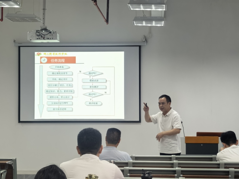 2025年5月22日,太阳集团城官网1407机电工程学院的青年教师们迎来了一场“及时雨”——广东工贸机电工程学院院长、全国优秀教师罗庚兴教授以《项目化课程设计与实施》为题,佛山职业技术学院专任教师、全国优秀教师肖志良教授以《让学生们喜欢你的课》为题,为学院40岁以下青年教师开展专项培训。这场持续2个半小时的专题培训以提升职教能力为目的,通过“项目设计+情景模拟+思政方法论”的新颖形式,让参训教师直呼“解渴”。
