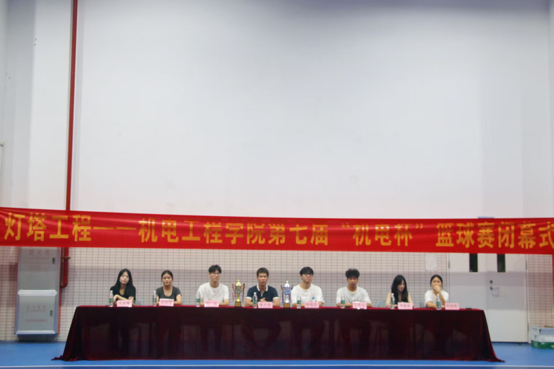 为进一步丰富校园文化生活的内涵,全面增强学生的身体素质,同时着力培养同学们在集体活动中的团队协作精神与良性竞争意识,机电工程学院于2025年6月4日晚上举行灯塔工程系列活动之第七届“机电杯”篮球赛闭幕式。本次出席的嘉宾有:机电工程学院体育部指导老师覃才尧、机电工程学院学生会主席何磊、刘莹莹、机电工程学院体育部负责人钟铭彦、校体育部和校礼仪队相关负责人。两支进入决赛的队伍分别是23机制1班和23工互1班。