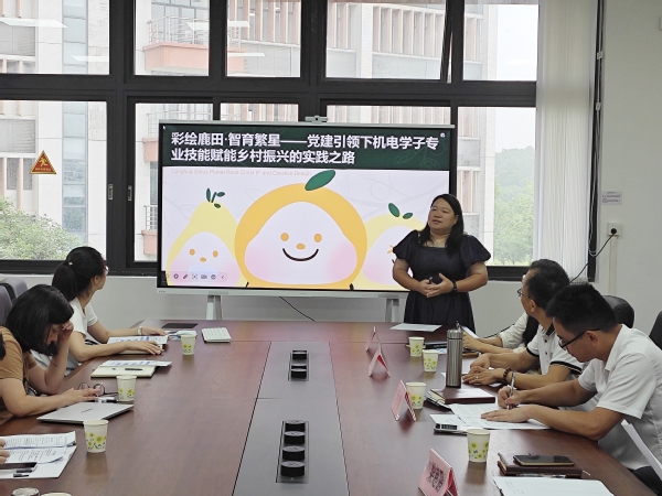 在主题分享环节,五位老师依次登台,带来精彩实务分享。曹恬聚焦“当老师听不懂学生,学生怕找老师”困境,推出“班主任沟通急救包”,从沟通心态、技巧、场景应对等维度,传授建立有效师生沟通的方法,助力班主任破解沟通难题;周灿围绕毕业季学生心理危机干预,以“毕业季的‘心’守护”为主题,结合真实案例,讲解心理危机识别、干预流程与实操技巧,为辅导员守护学生心理健康筑牢防线; 李慧颖从发展党员工作规范出发,开展“高质量做好发展党员工作”流程分享,细致梳理入党申请、培养教育、考察发展等环节要点,强调严把党员发展“质量关”;邱腾雄立足高职教育定位,探讨“高职专业教师的教学责任:从知识到素养的全面培养”,解析专业教学中如何融合职业素养培育,实现学生知识与能力双提升;吴文婷分享“党建引领下机电学子专业技能赋能乡村振兴的实践之路”,介绍学院依托专业优势,通过党建结对、技术帮扶等形式助力乡村发展的探索,为学工融合专业服务社会提供思路。参会老师也围绕分享内容踊跃发言,结合工作实际提出疑问、分享感悟,现场思维碰撞不断。