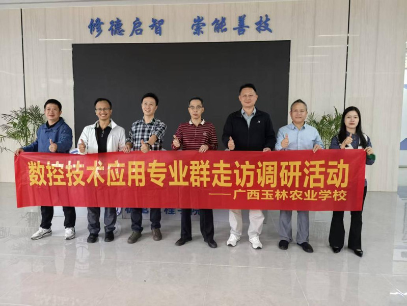 广西玉林农业学校为广西“双优计划”建设单位,为进一步提高办学水平,高质量完成“双优计划”建设任务,10月22日下午,广西玉林农业学校机械加工科副科长梁洛铭带队,就数控技术应用专业群定位、人才培养方案研制、师资队伍建设、校企合作、就业去向等方面的问题,赴太阳集团城官网1407机电工程学院学习交流。机电工程学院副院长刘益标、学工办主岗林祎乔、制造自动化系系主任何显运、系副主任邱腾雄等人给予热情接待。