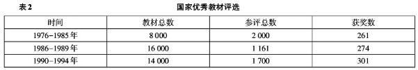 其一,开展优秀教材评选,积极构建教材建设激励机制。早在1984年,教育部就开始酝酿开展优秀教材评选工作。[14]1987年,国家教委组织实施了第一次全国高等学校优秀教材评选活动,到1995年,共进行了三次评选。[15]此外,国家教委还先后组织开展了教书育人优秀奖,实验室工作优秀奖,优秀教学成果奖,从整体上带动学校对教学工作的重视。(见表2)