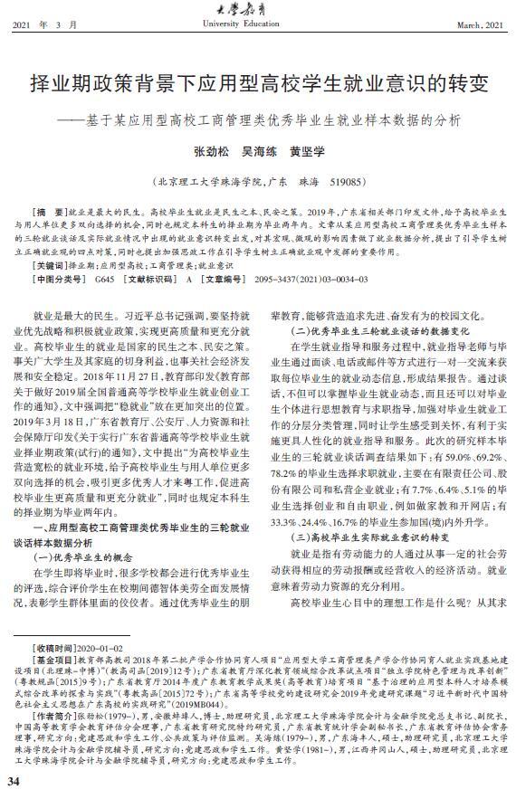 关键词:择业期;应用型高校;工商管理类;就业意识