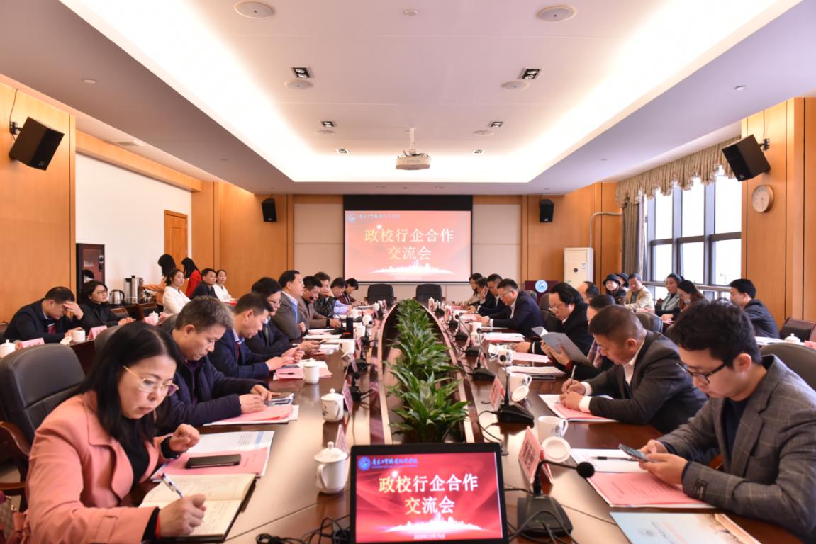 会上,校长何汉武介绍了我校的办学历史,结合我校“双高”建设在专业设置、科研成果、师资队伍培养等方面所取得的办学成就,阐述了校企合作的可行性与必要性,希望能够充分利用学校在人才培养、学术研究、科技研发和社会服务等方面的综合优势为乡村振兴提供智力支持和技术支持,为社会贡献工贸力量。