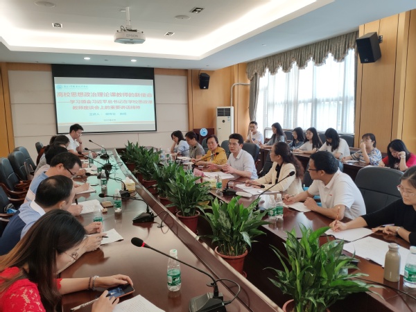 随后,谢教授作了题为“高校思想政治理论课教师的新使命”的学术讲座,他指出:一、思政课教师要把握育时代新人的目标,及时更新自身的知识储备,适应时代发展的潮流,多关注时事热点,多联系学生实际,挖掘学生最关心的案例,用理论的深度和开阔的视野让思政课既有高度又接地气;二、思政课教师要按照“四有好老师”、“四个引路人”、“六要”的要求,不忘初心、牢记使命,传承师道,立德树人,做好学生引路人;三、要坚持“四个相统一”和“八个相统一”,站稳政治立场,以理服人、以德感人,直面问题和质疑,做到“不怕问、怕不问、问不怕”,让思政课既有润物无声的效果,也有惊涛拍浪的声势,真正上到学生心坎里。最后,他鼓励马院教师要敢担当、敢作为,坚持不懈的努力,真正把思政课讲好,不辜负习近平总书记在思政理论课教师座谈会上的殷殷期待。马院常务副院长李瑞清作了会议总结,她强调马院教师一定会贯彻落实好习近平总书记重要讲话精神,以“八个相统一”创新教学改革,以“六要”严格要求自己,要有真才实学、做可信、可敬、可靠,乐为、敢为、有为的思政课教师。
