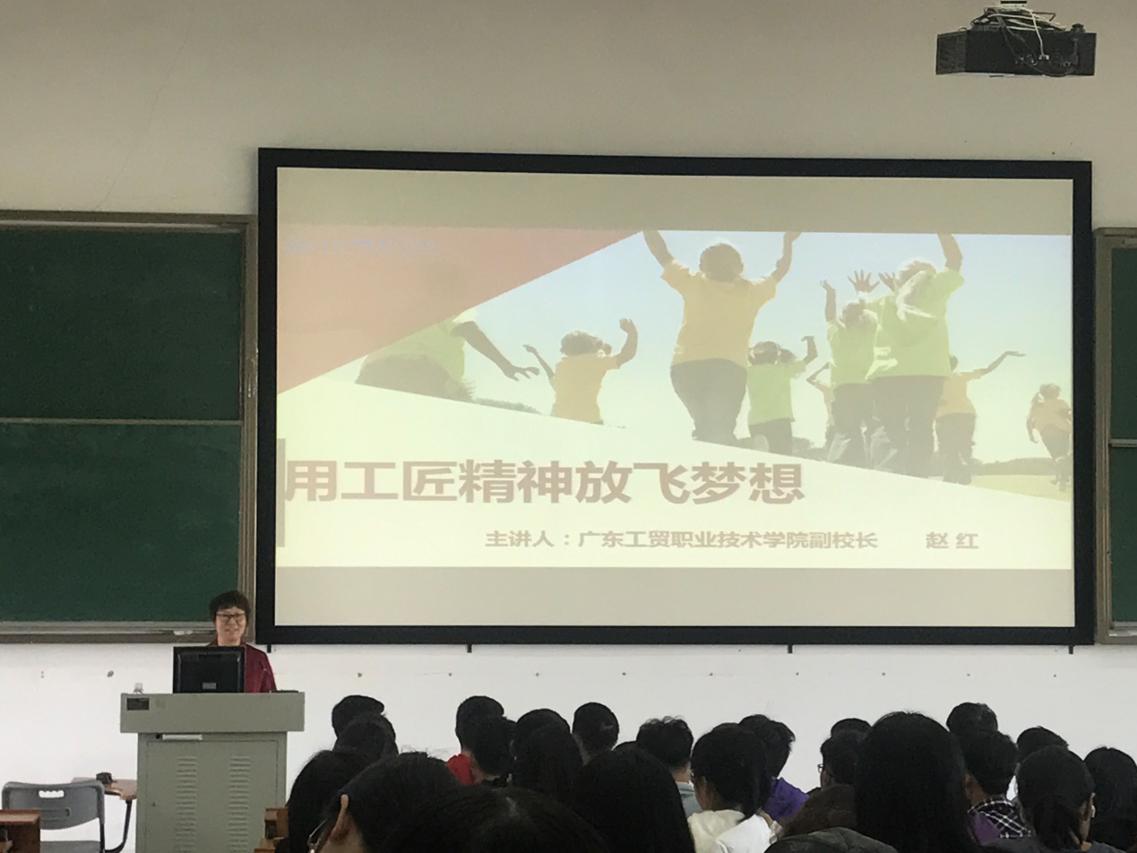 赵副校长讲授的专题“用工匠精神放飞梦想”。首先从习近平总书记对弘扬工匠精神的重要论述切入主题,强调要充分认识习近平总书记关于“工匠精神”、“劳模精神”和“团结精神”的重要意义。