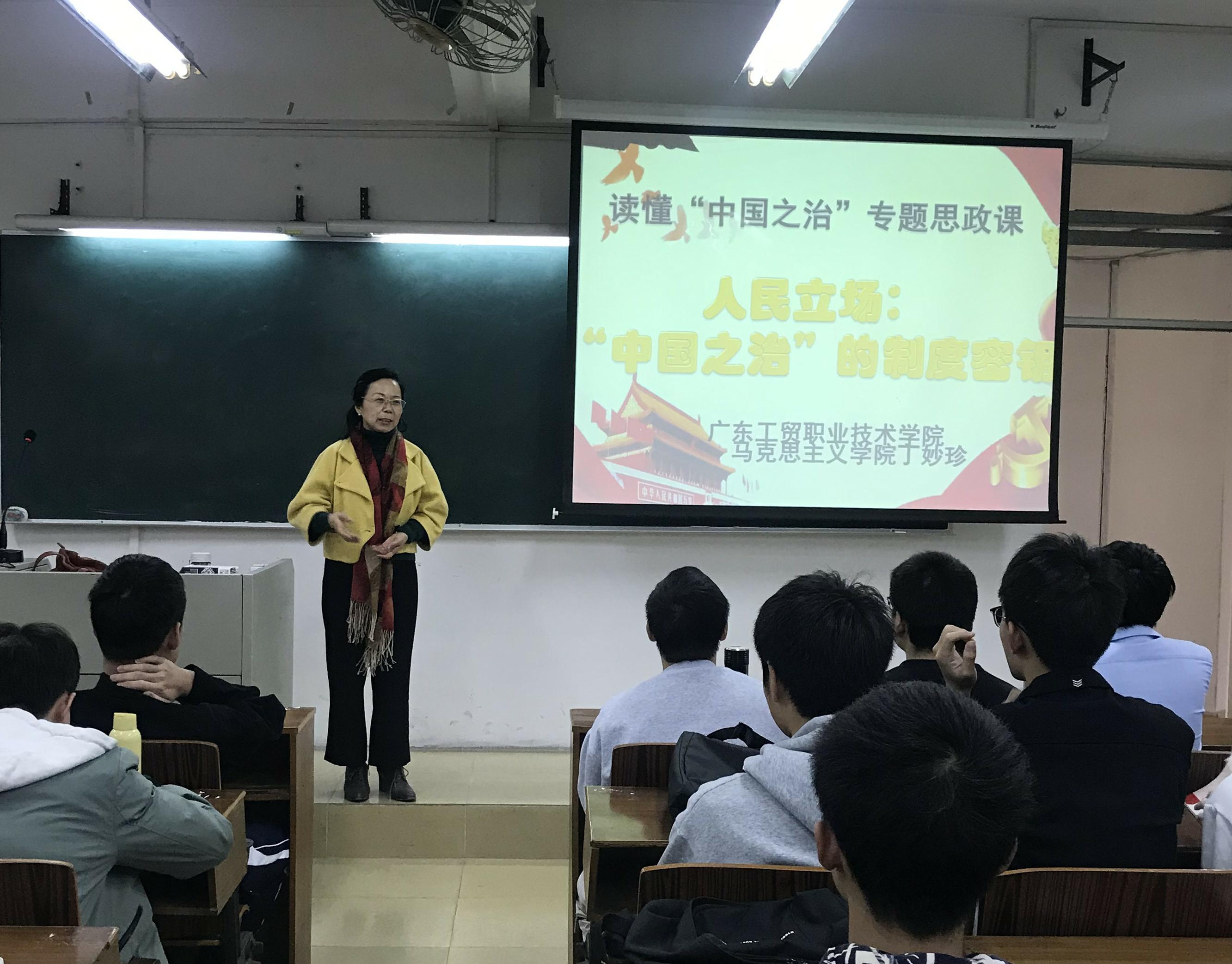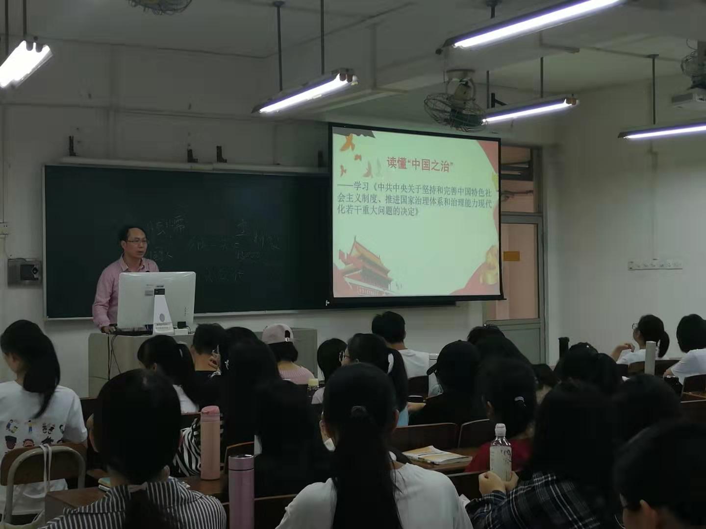 根据广东省委宣传部、省委教工委《关于开展读懂“中国之治”专题思政课和系列讲堂活动的通知》和学校党委的统一安排部署,12月17日——27日,我校马克思主义学院组织全体教师利用“形势与政策”课在全校范围内开展了“读懂‘中国之治’”专题思政宣讲活动。我校大一大二共有243个班级9781名同学聆听了宣讲。